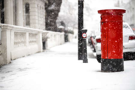 SWANSEA, WALES, UK - FEBRUARY 25, 2021: Traditional British red Royal Mail mailbox for letters in a Street in Wales, United Kingdom