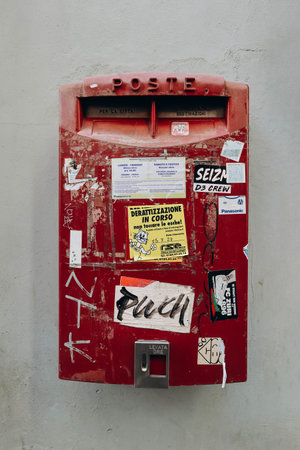 Sanremo, Italy - 25.03.2023: Post box in the Italian town of Sanremo, Liguria