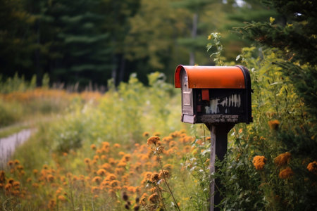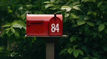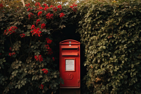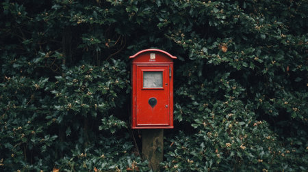A vibrant red post box stands out amidst lush green foliage, capturing a sense of nostalgia and rural beauty. This charming scene highlights traditional mail delivery.