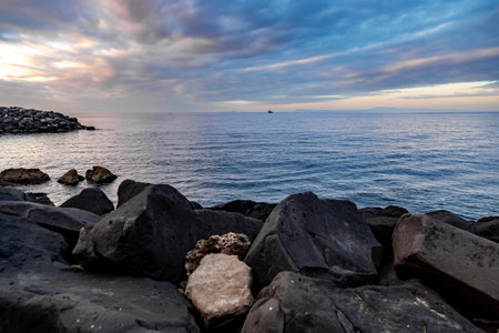 marine sunset on the splendid Sicilian volcanic coast