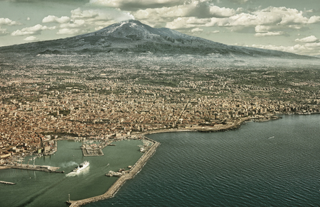 Air photo of Catania city in Sicily with the Etna Vulcan in the back. (HDR image with black gold filter)