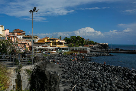 A scenic view of the sea stacks in Acitrezza. Sicily
