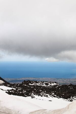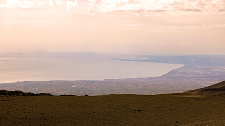 Volcanic landscape in Etna with Catania, Sicily, Italy