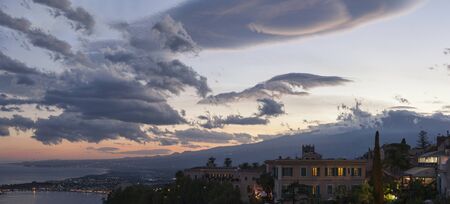 Sunset on Taormina town in Sicily
