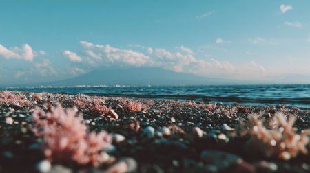 a rocky pond with crystal clear water, resembling the coastal scenery of ocean academia. captured with the carl zeiss distagon t 15mm f/2.8 ze lens, the photo showcases a palette of light green and dark gray. reminiscent of the works of fujishima takeji and lawrence alma-tadema, this national geographic-worthy image captures the beauty of nature. ai generated