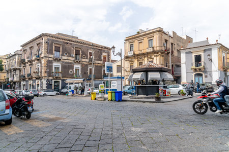 Catania, Sicily - august 16, 2018: beautiful cityscape, facade of old buildings