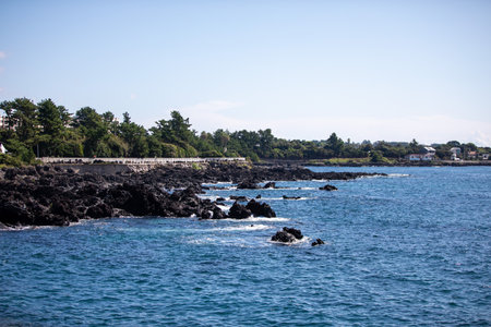 Coastline formed by volcanic activity on Ogi coast in Sado Island, Niigata prefecture, Japan.