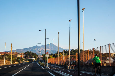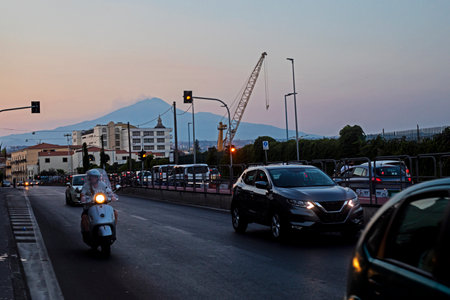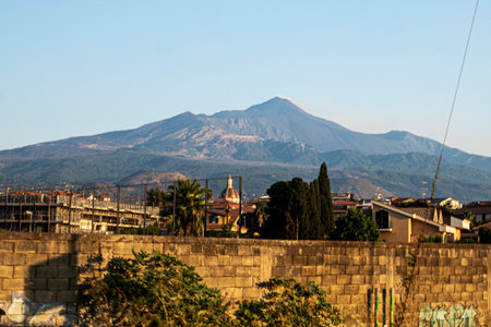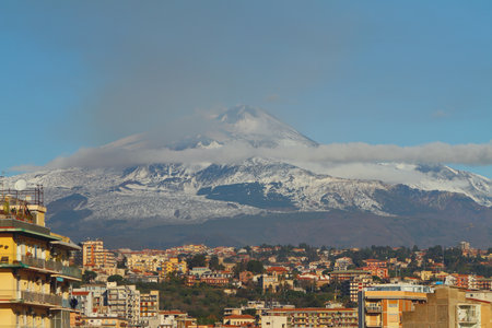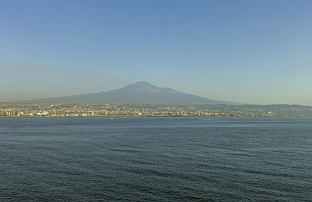 Sicily, Italy - February 29, 2016: View of Mount Etna from the south of Catania.