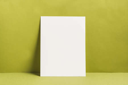 Stylish white blank paper mockup on a colorful background. Document and presentation stationery creator. Selective focus on paper