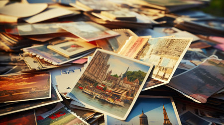 collectionofvintagepostcardsfromexoticdestination. This image is created with AI.