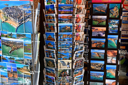 Saint-Malo; France - July 30 2023: souvenir shop in the walled city