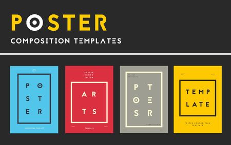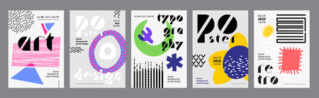 Abstract cover typography template. Posters layouts with bright colors, collage of artistic vibrant dynamic shapes and geometric forms. Social media banners set in retro design. Vector illustration.