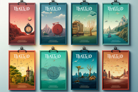 Framed visuals of diverse subjects are arranged on a sleek wall, creating a captivating gallery that combines modern design with artistic expression.
