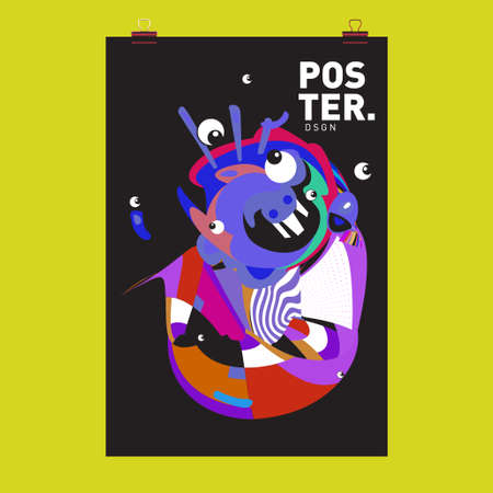 Abstract colorful collage poster design template. Cool geometric and retro cover design. Blue, yellow, red, orange, pink and green background. Vector banner poster template.