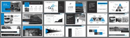 Blue and black banking or finance concept infographics set. Business design elements for presentation slide templates. Can be used for annual report, advertising, flyer layout and banner design.