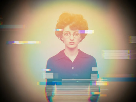 Digital portrait of young caucasian female with artistic glitch effect.