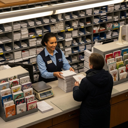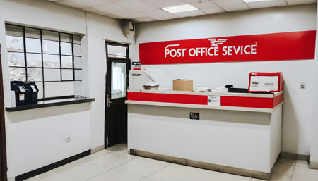 Kirkland, WA USA - circa December 2021: Angled view of a postage supply desk at a post office inside a Party City.