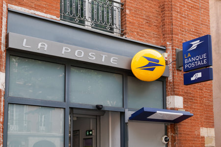 Toulouse, Occitanie France - 06 06 2021: la poste sign brand and Banque postale text logo of office french post agency bank