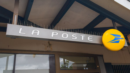 Bordeaux, France - 10 09 2024: La poste text sign and logo brand on entrance wall office facade building