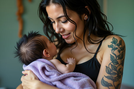 Generative AI and a loving mother carrying her newborn