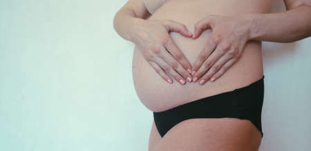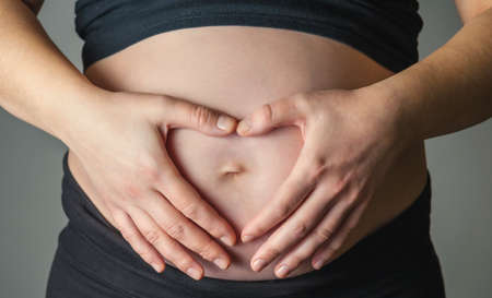Close up of pregnat woman with heart shape on abdomen
