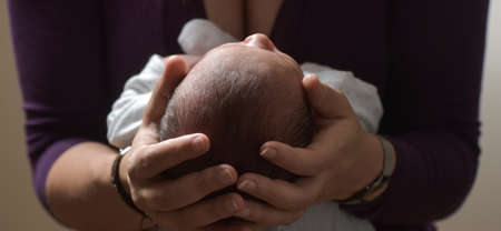 Young mother carrying in her hands the head of her baby, France