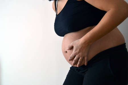Image of pregnant woman touching her belly with hands.