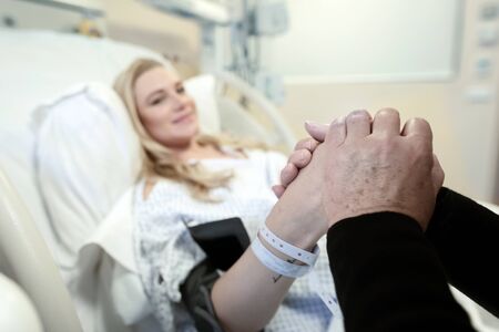 Sick patient lying on bed in hospital for medical background