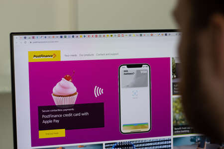 New York, USA - 1 May 2021: PostFinance company website on screen, Illustrative Editorial