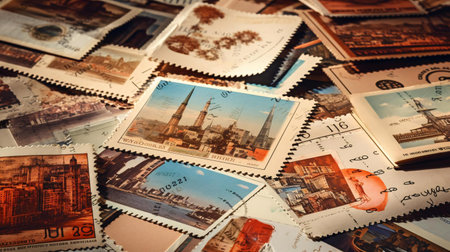 Colorful vintage postage stamps from various countries and eras are creating a nostalgic and captivating collection for philatelists and history enthusiasts