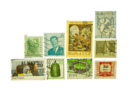 World post stamps isolated on a white background
