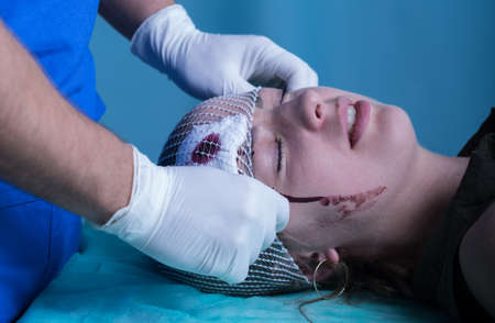 Cropped picture of a doctor dressing a wound on young woman's head
