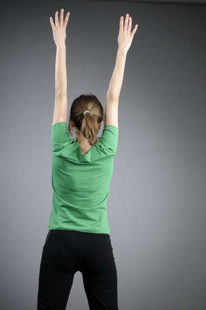 Back view of sporty woman with arms outstretched