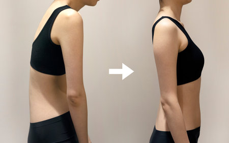 Posture correction of woman's rounded shoulders