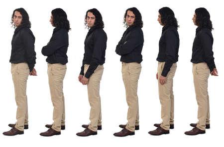various poses of the same man from the side view on white background
