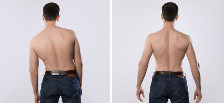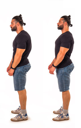 Muscular man with stooped and straight back