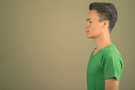 Young handsome Indian man against colored background