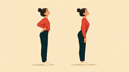 Posture Correction Before and After Standing Straight. AI Generative.