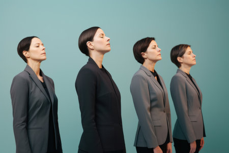 side view of a group of same women various poses on white background