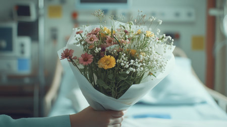 Delivery of a colorful bouquet to brighten someones day in a hospital setting