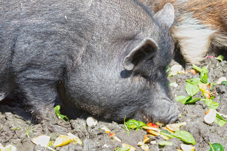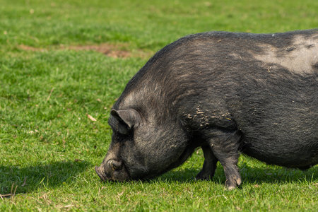 Vietnamese black bast-bellied pig. Herbivore pigs.