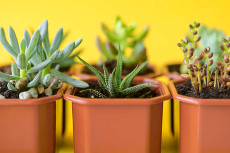 group of Potted succulent flowers background greenhouse flower shop tropical botanical plants gardening home plants