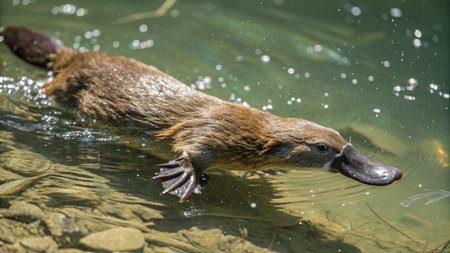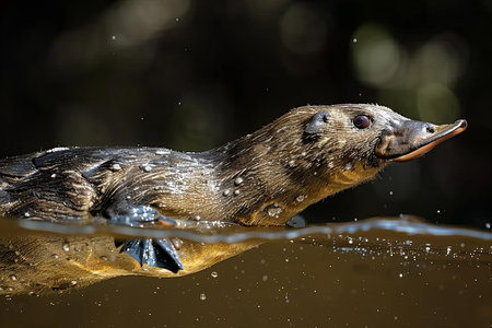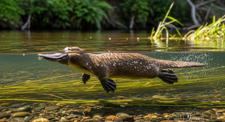 Platypus or platypus is swimming in the water.