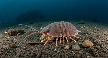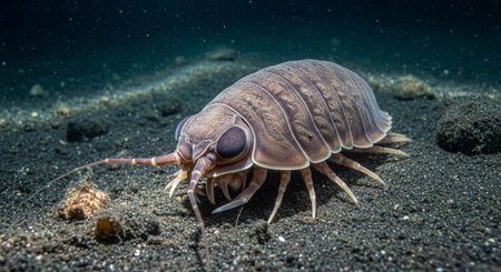 A trilobite with its intricate patterns and spiny ridges crawling across the ocean floor.. AI generation