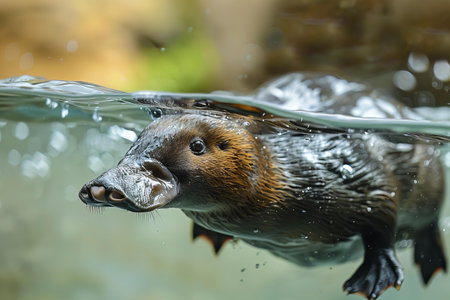 Close-up of a male platypus swimming in water