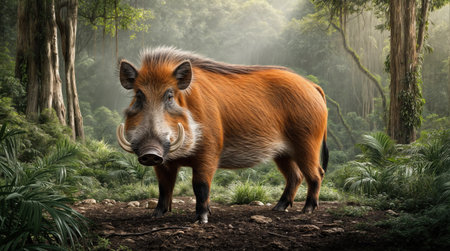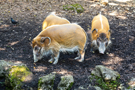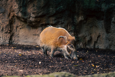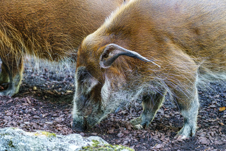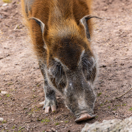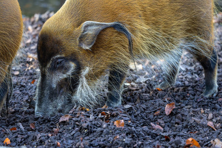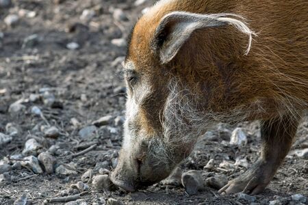 Mature specimen of red river hog or potamochoerus porcus pictus