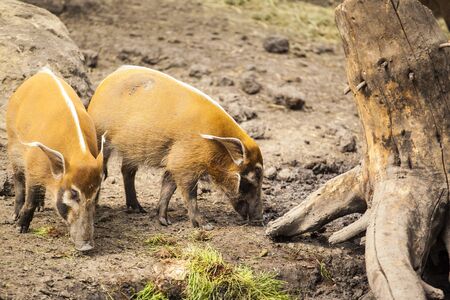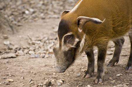 Red river hog, Potamochoerus porcus, also known as the bush pig. This pig has an acute sense of smell to locate food underground.