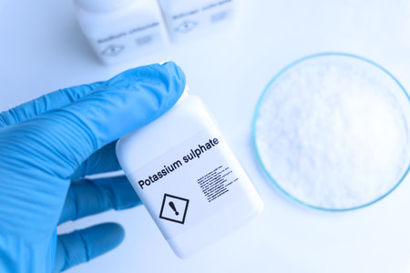 Potassium sulphate in bottle , chemical in the laboratory and industry, Chemicals used in the analysis