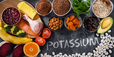 Composition with food products rich in potassium.