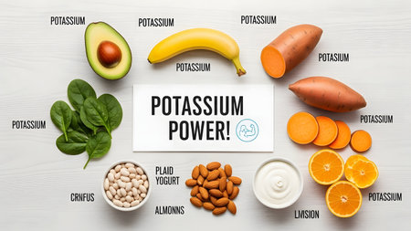 Inscription potassium with nutritious various ingredients containing natural minerals and vitamin K